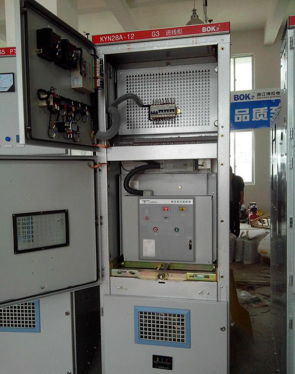 KYN28(GZS)型戶內(nèi)金屬鎧裝抽出式開關(guān)設(shè)備(以下簡稱開關(guān)設(shè)備)。該開關(guān)設(shè)備系3-10KV三相交流50Hz單母線分段系統(tǒng)的成套配電裝置。主要用于發(fā)電廠、中小型發(fā)電機(jī)送電、工礦企事業(yè)配電以及電業(yè)系統(tǒng)的二次變電所的受電、送電及大型高壓電動(dòng)機(jī)起動(dòng)等,實(shí)行控制保護(hù)、監(jiān)測(cè)之用。具有防止帶負(fù)荷推拉斷路器手車、防止誤分合斷路器、防止接地開關(guān)處在閉合位置時(shí)關(guān)合斷路器、防止誤入帶電隔室、防止在帶電時(shí)誤合接地開關(guān)的聯(lián)鎖功能,既可配用VS1真空斷路器,也可配用ABB公司的VD4真空斷路器,是一種性能優(yōu)越的配電裝置。